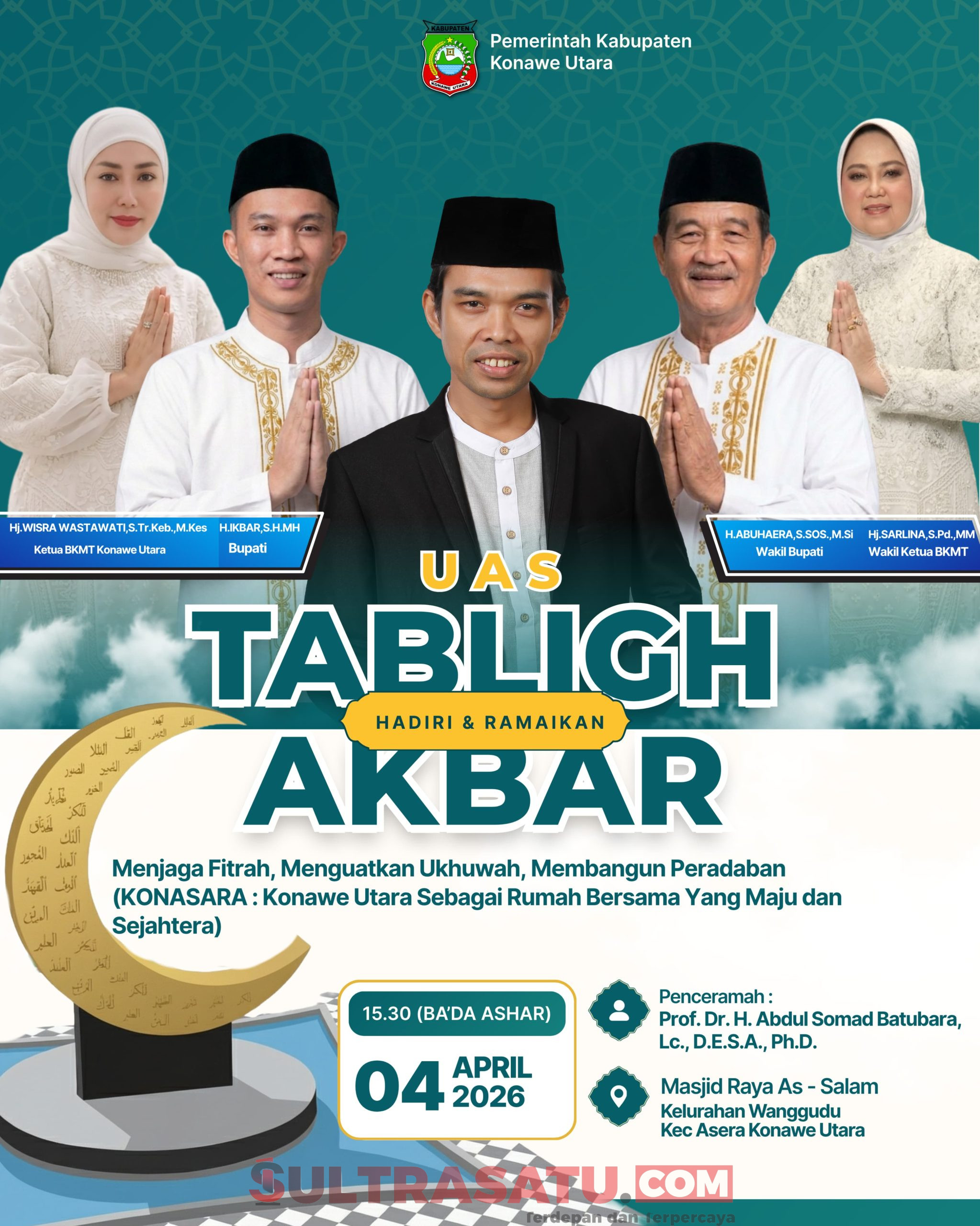Perkuat Ukhuwah Islamiah, Pemda Konut Bakal Gelar Tabligh Akbar Bersama Ustadz Abdul Somad (UAS) Daerah28 Maret 2026 | 10:12 am