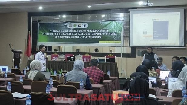 KENDARI, SULTRASATU.COM – Pemerintah Kabupaten Konawe Utara menggandeng Kantor Pelayanan Pajak (KPP) Pratama Kendari memberikan pelatihan kepada para aparat desa se-Kabupaten Konawe Utara dalam pengelolaan dan pelaporan pajak keuangan desa melalui Sistem Coretax. Pelatihan ini dilaksanakan selama tiga hari pada Minggu-Selasa (14-16/9/2025).