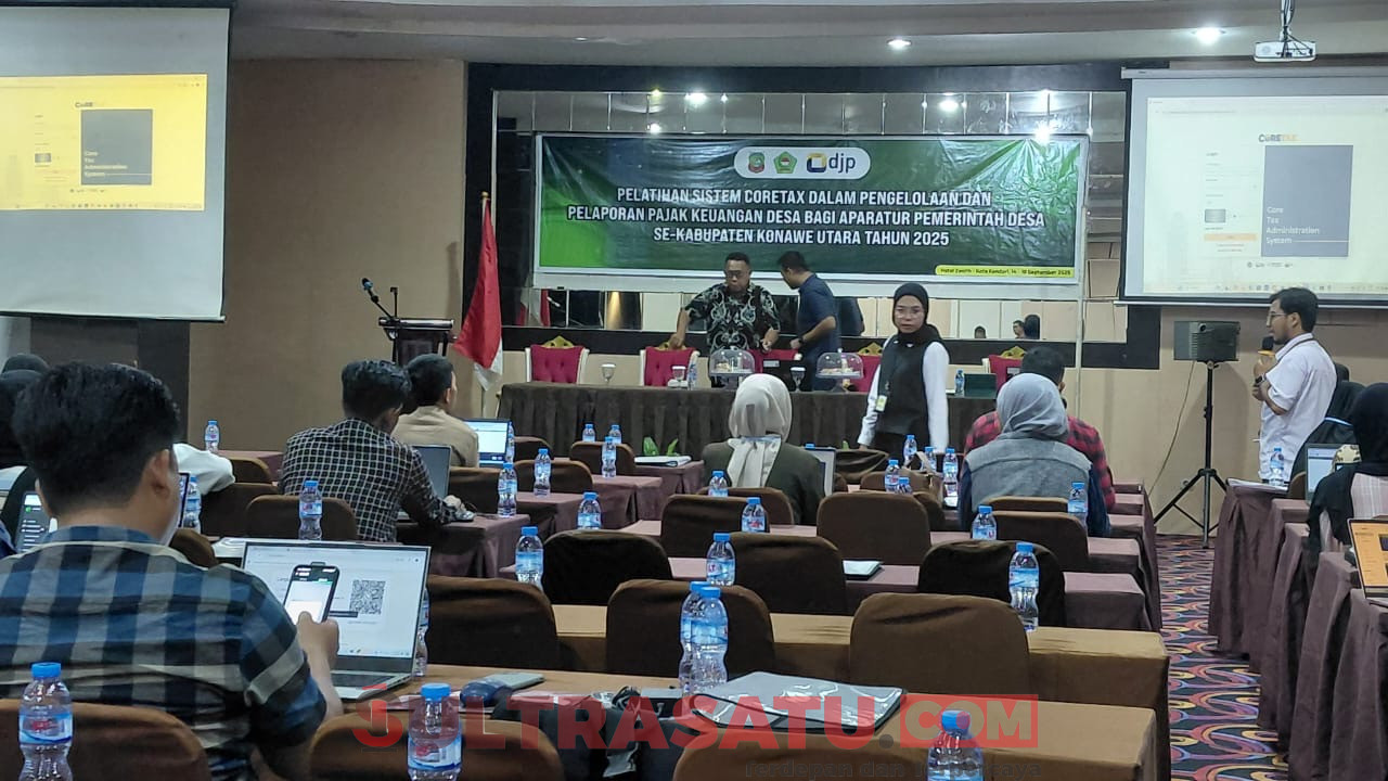 Pelatihan sistem Coretax dalam pengelolaan dan pelaporan pajak keuangan desa bagi aparatur desa se-Kabupaten Konawe Utara berasal dari 159 desa yang ada di Kabupaten Konawe Utara.