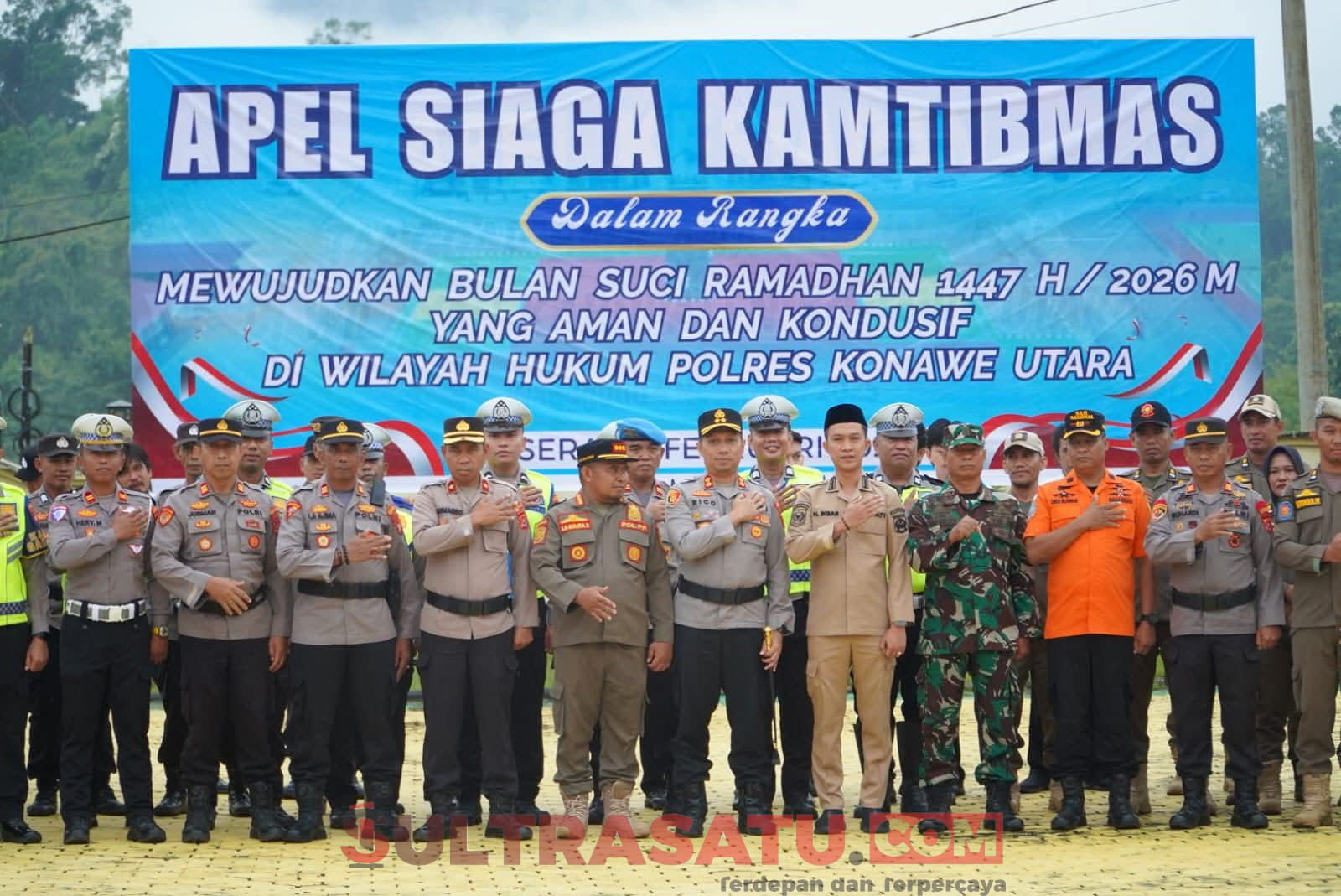KONAWE UTARA, SULTRASATU.COM– Bupati Konawe Utara, H. Ikbar, SH., MH., menghadiri apel siaga bulan suci Ramadan 1447 Hijriah di Lapangan Upacara Polres Konawe Utara pada Selasa (24/2/2026).