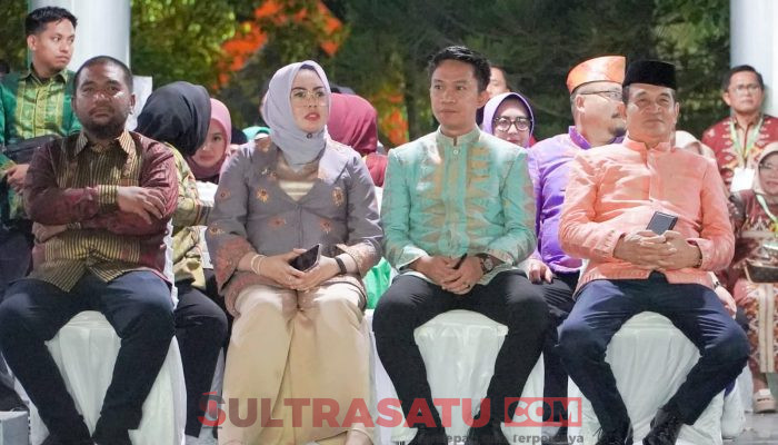 Dalam kesempatan itu, Bupati Konawe Utara hadir didampingi Ketua TP-PKK Konawe Utara, Hj. Wisra Wastawati Ikbar, S.Tr.Keb. Keduanya kompak mengenakan tenun khas Konasara.
