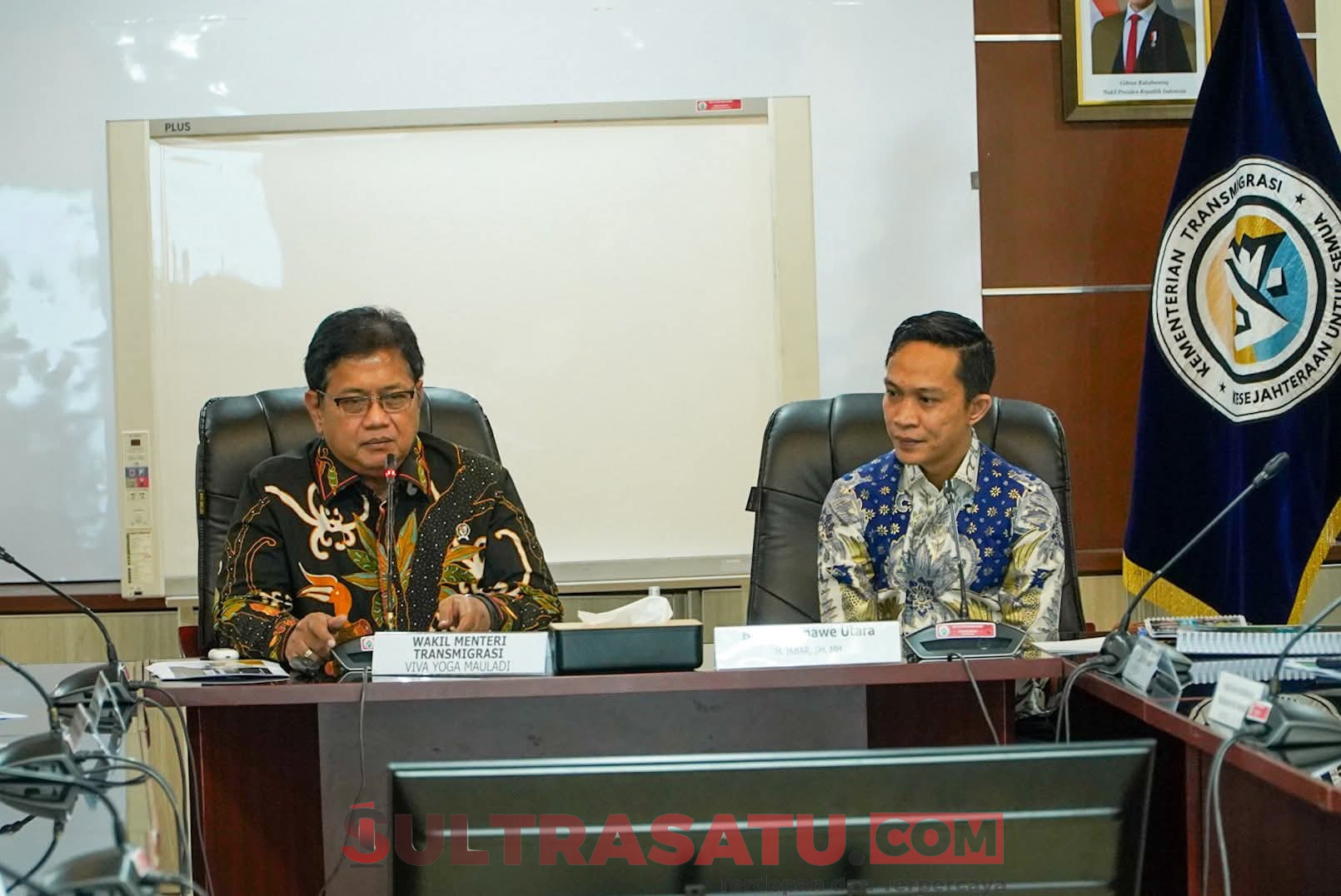 JAKARTA, SULTRASATU.COM – Bupati Konawe Utara (Konut), H. Ikbar, SH., MH, melakukan audiensi dengan Wakil Menteri Transmigrasi Republik Indonesia (RI) Viva Yoga Mauladi, S.IP., M.Si, terkait pengembangan kawasan transmigrasi di Kabupaten Konut di Kantor Kementerian Transmigrasi RI, Jakarta, pada kamis (12/3/2026).
