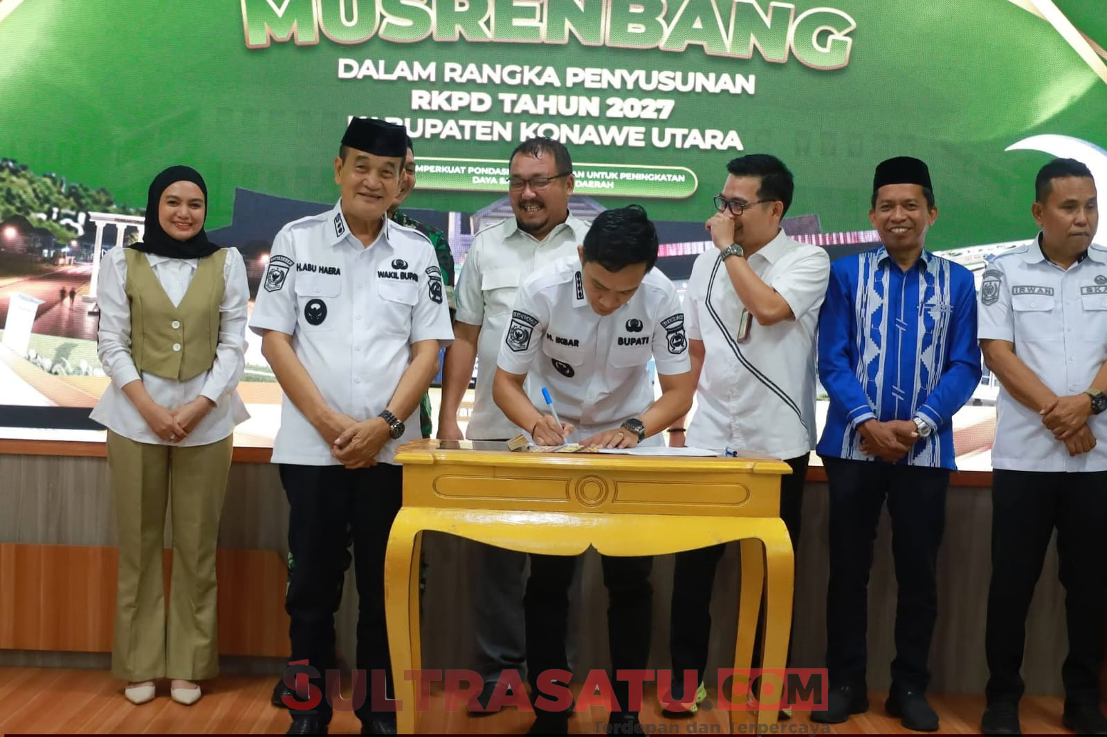KONAWE UTARA, SULTRASATU.COM – Bupati Konawe Utara (Konut), H. Ikbar, SH.,MH didampingi Wakil Bupati Konawe Utara, H. Abuhaera, S.Sos.,M.Si, secara resmi membuka kegiatan Musyawarah Perencanaan Pembangunan (Musrenbang) dalam rangka penyusunan Rencana Kerja Pemerintah Daerah (RKPD) Kabupaten Konawe Utara Tahun 2027, Rabu (1/4/2026).