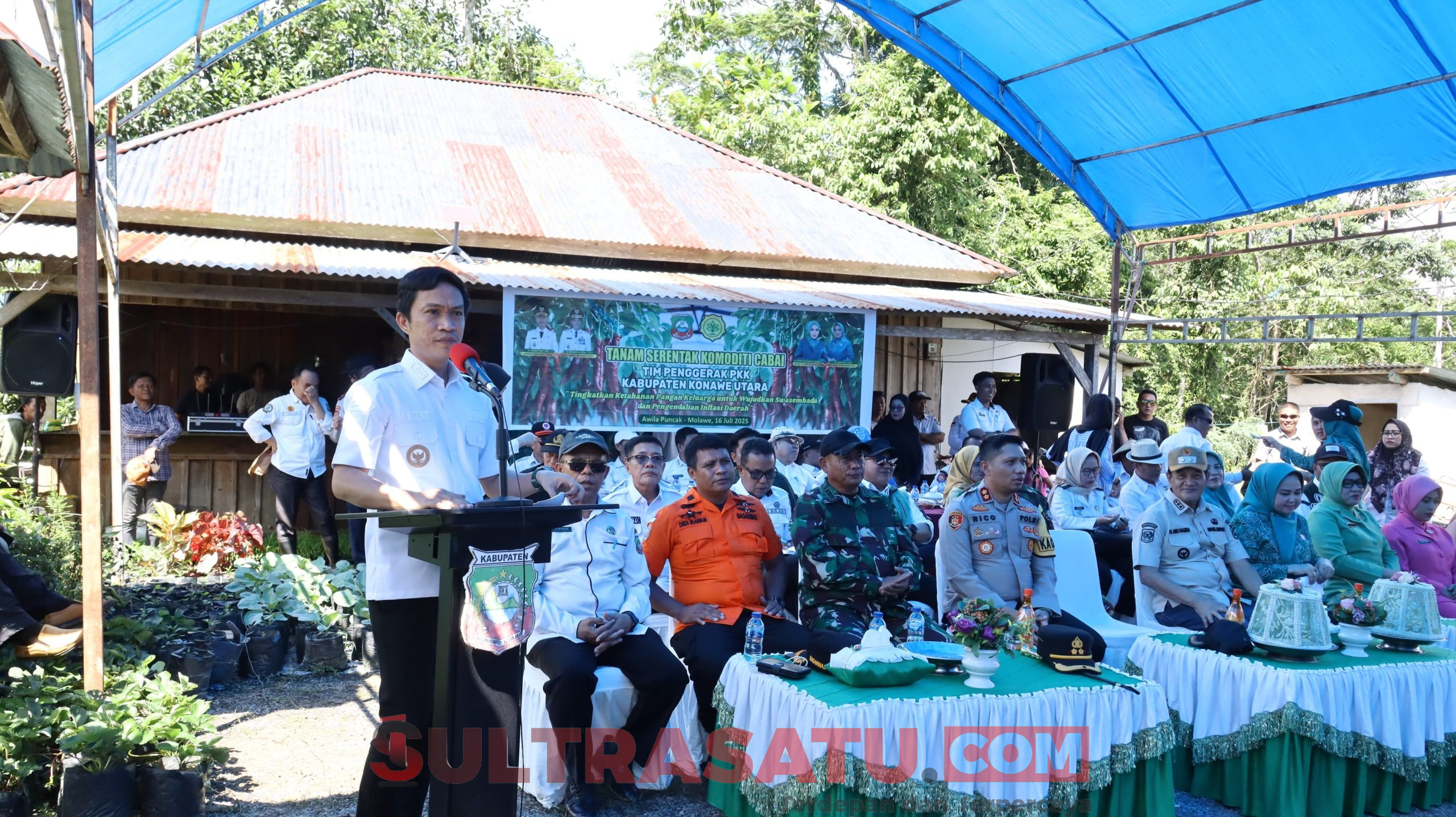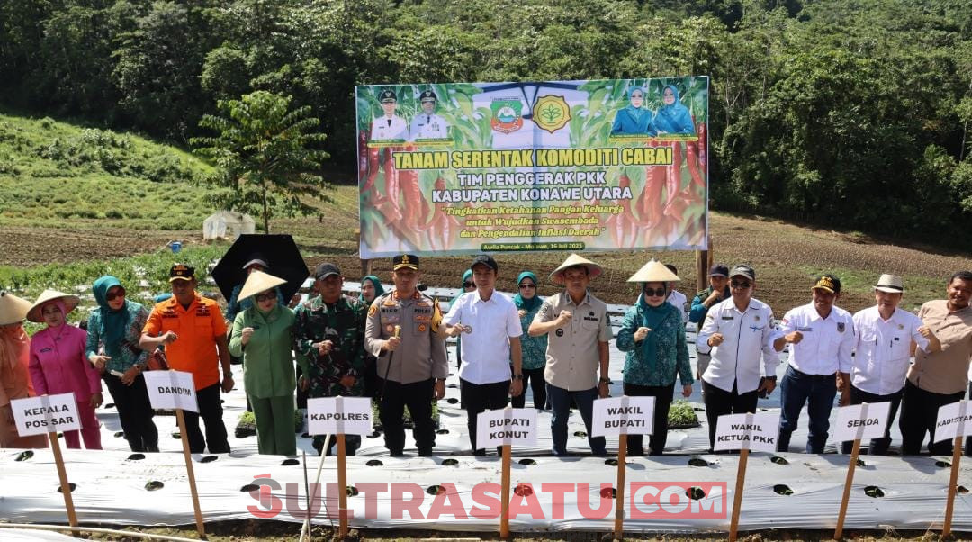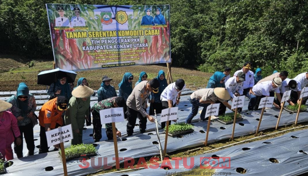 KONAWE UTARA, SULTRASATU.COM – Pemerintah Kabupaten Konawe Utara (Konut) bersama Tim Penggerak PKK Kabupaten Konawe Utara menggelar Gerakan Tanam Serentak Komoditi Cabai, Rabu (16/7/2025). Kegiatan ini merupakan bagian dari Program Pemanfaatan Pekarangan (P2KP) yang dipusatkan di kebun percontohan Desa Awila Puncak, Kecamatan Molawe.