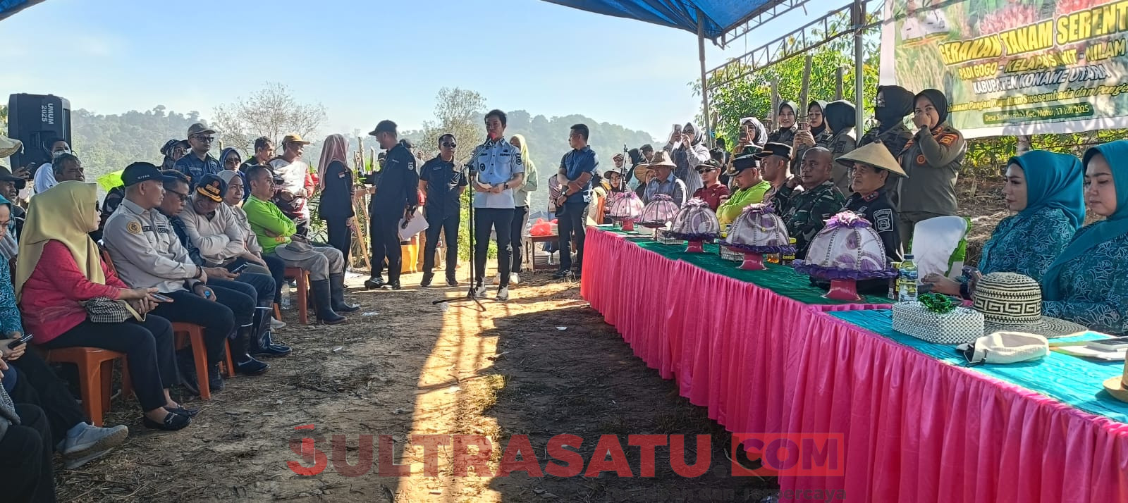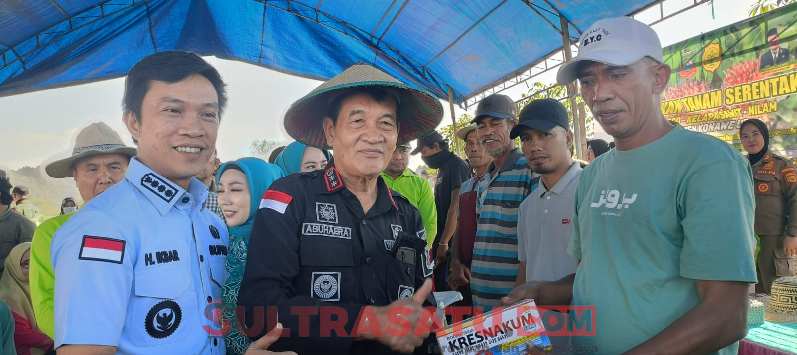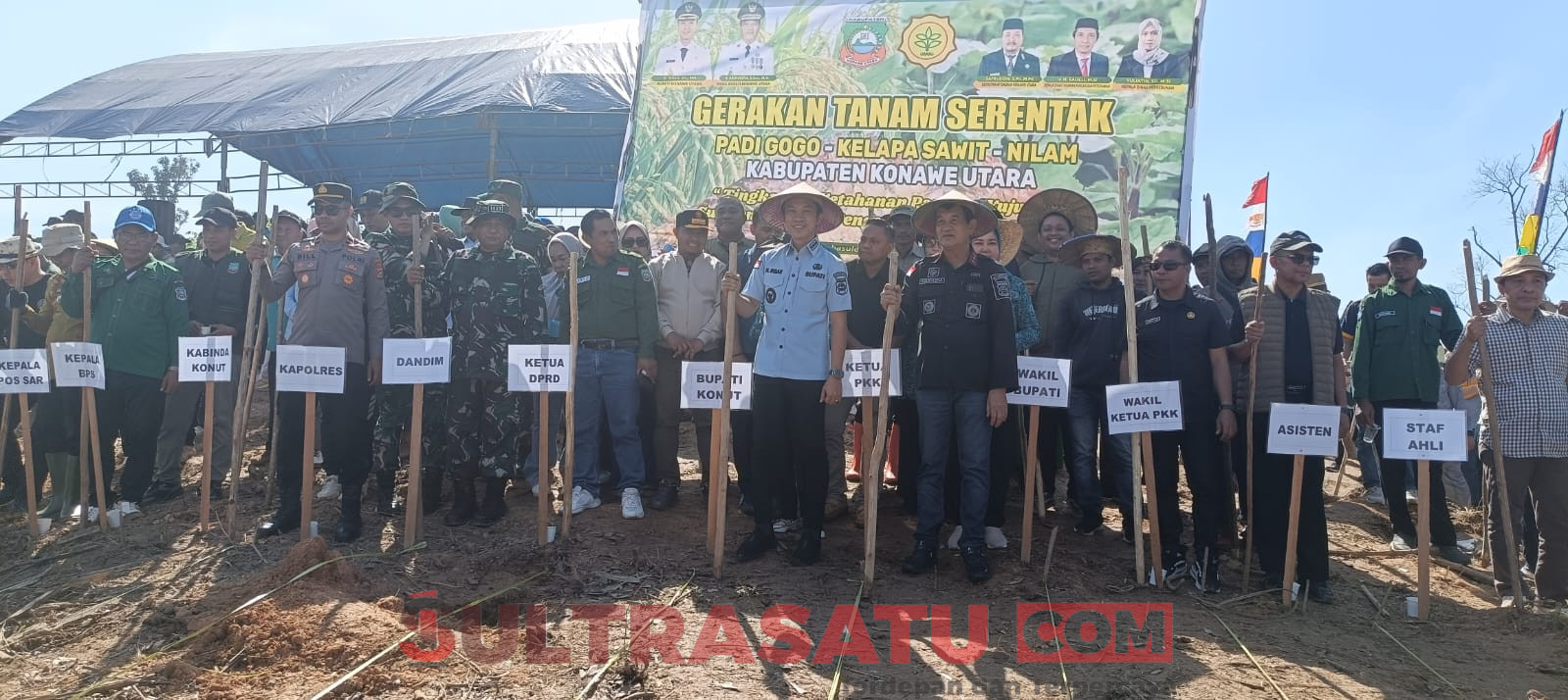 KONAWE UTARA, SULTRASATU.COM – Pemda Konawe Utara (Konut) adalah salah satu daerah di Sultra yang terus memaksimalkan sinergi program dengan pemerintah pusat. Berbagai program pemerintah pusat diakomodasi sebagai bentuk dukungan untuk kesejahteraan masyarakat. Di antaranya adalah bidang ketahanan pangan. Sebagai perwujudan upaya swasembada pangan serta pengendalian inflasi daerah, Bupati Konawe Utara H. Ikbar, SH., MH, didampingi Wakil Bupati H. Abuhaera, S.Sos., M.Si memimpin Gerakan Tanam Serentak Padi Gogo, Kelapa Sawit, dan Nilam, di Desa Sambasule, Kecamatan Motui, Kamis (17/7/2025).