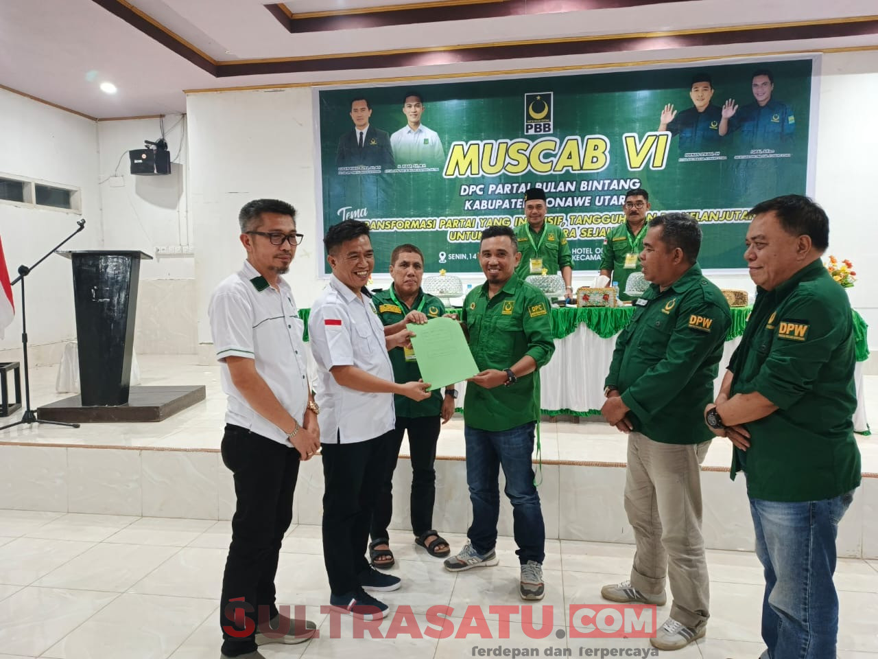 KONAWE UTARA, SULTRASATU.COM – Partai Bulan Bintang (PBB) Kabupaten Konawe Utara (Konut) memasuki babak baru dalam peta politik lokal. Melalui Musyawarah Cabang (Muscab) ke-VI yang digelar pada Senin (14/7/2025), PBB Konut resmi menetapkan kembali Herman Sewani, SH sebagai Ketua Dewan Pimpinan Cabang (DPC) secara aklamasi.