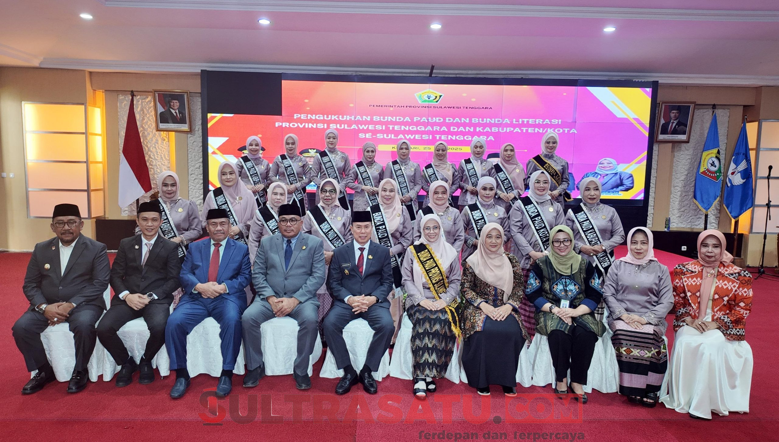 Gubernur Sultra, Bunda PAUD Sultra dan jajaran, serta sejumlah bupati, bersama para Bunda PAUD kabupaten/kota yang baru saja dilantik.