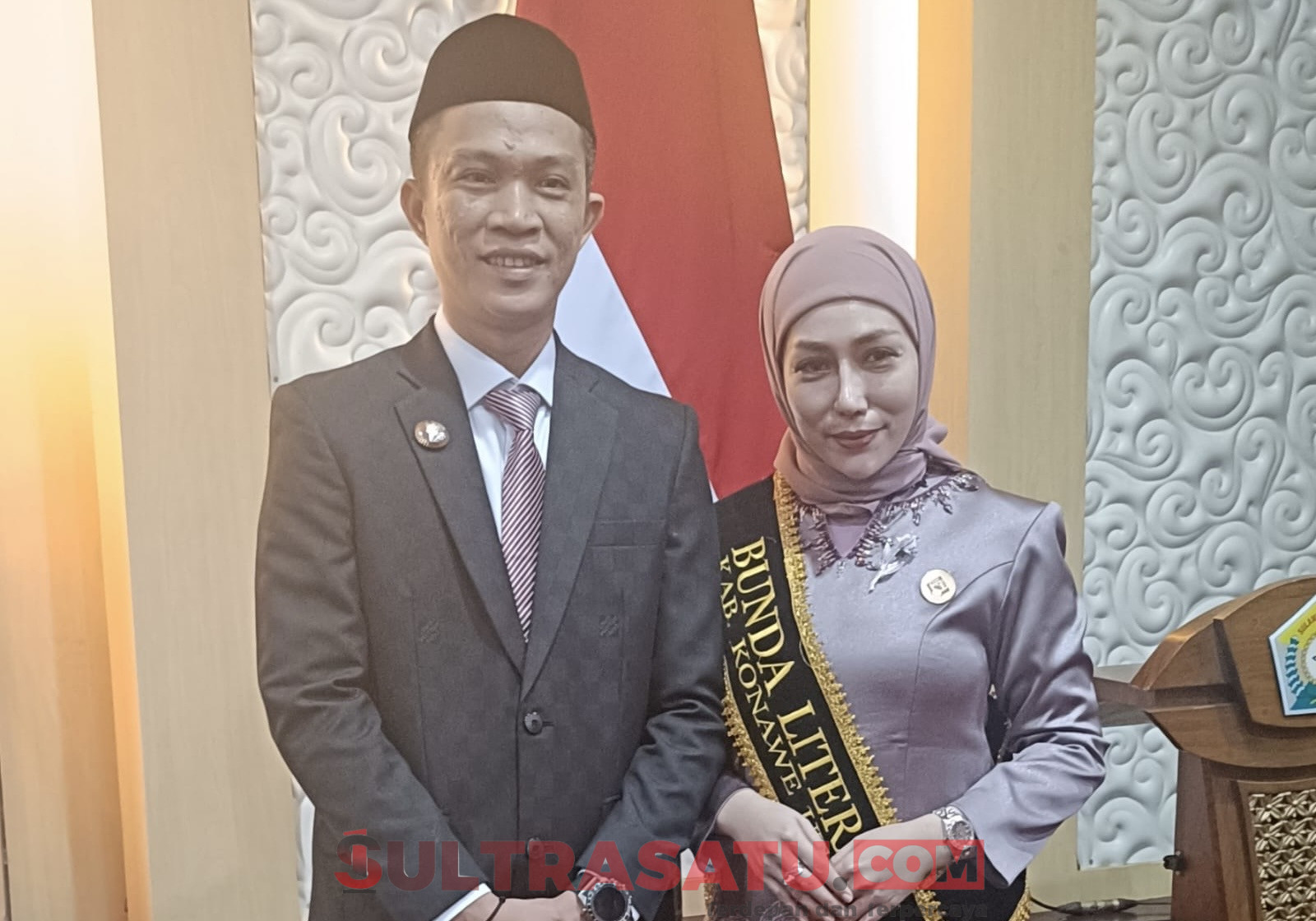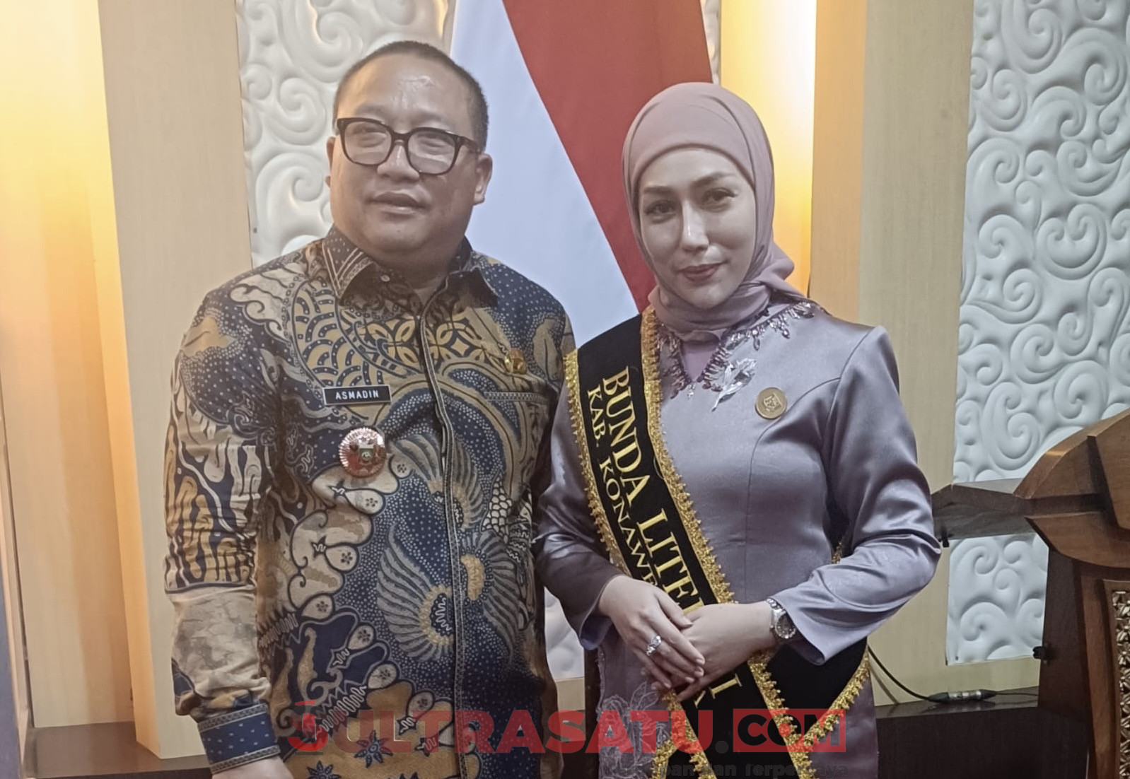 Bunda Literasi yang juga Bunda PAUD Konawe Utara Hj. Wisra Wastawati Ikbar, S.Tr.Keb bersama Kepala Dinas Pendidikan dan Kebudayaan Konut, Asmadin, S.Pd., MM.