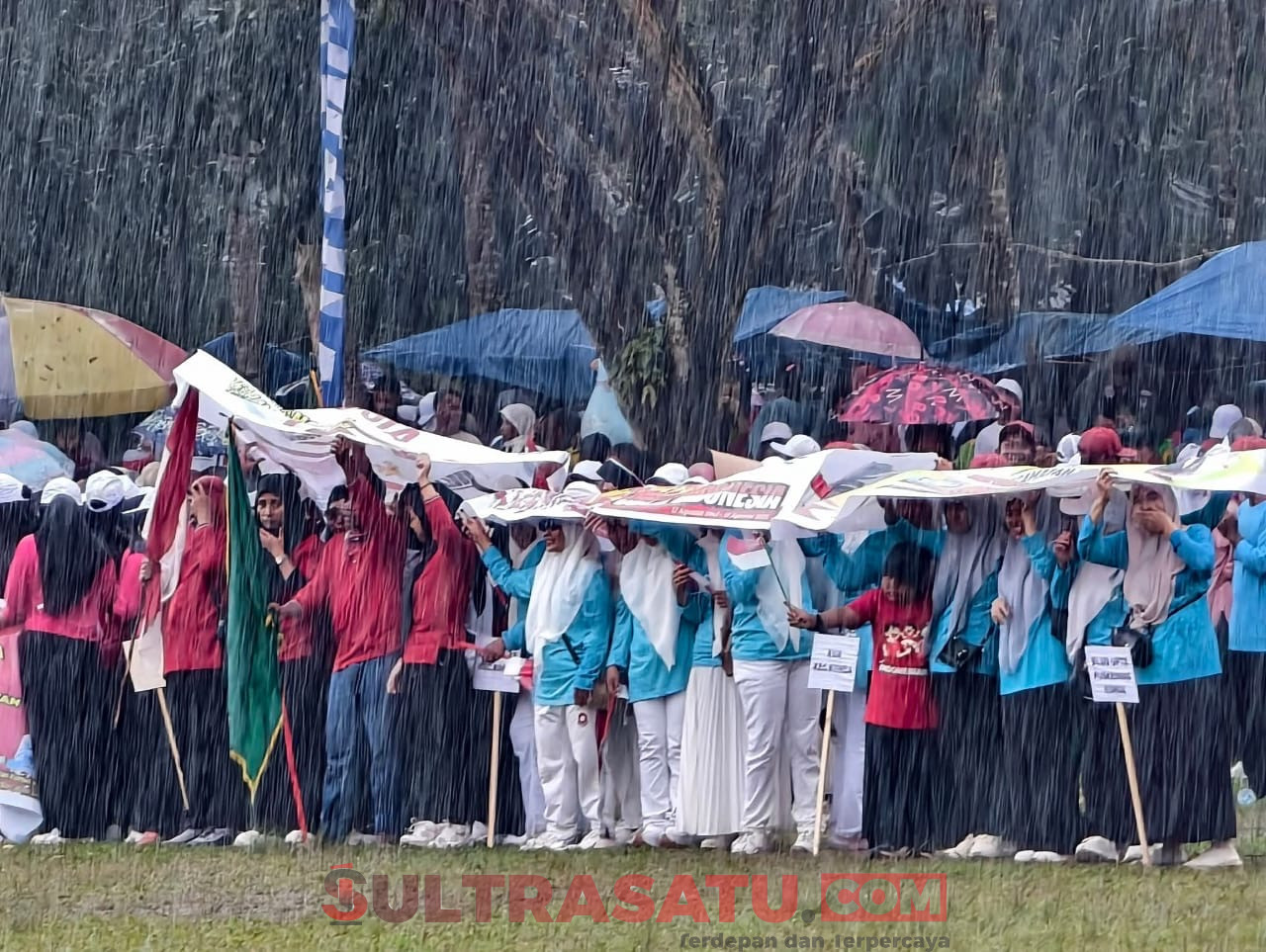 KONAWE SELATAN, SULTRASATU.COM – Semangat yang tak pernah surut ditunjukkan masyarakat Konda, Kamis (7/8/2025). Meski diguyur hujan deras, ribuan peserta upacara pembukaan Porseni HUT ke-80 RI tingkat Kecamatan Konda terus antusias hadir memeriahkan hari kemerdekaan bangsa Indonesia tahun 2025. Apalagi dengan kehadiran Bupati Konawe Selatan, Irham Kalenggo membuka kegiatan tersebut.