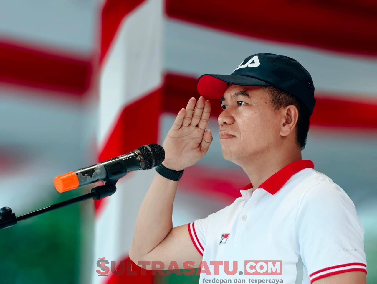 Irham Kalenggo memimpin jalannya upacara pembukaan Porseni HUT ke-80 RI di Kecamatan Konda.