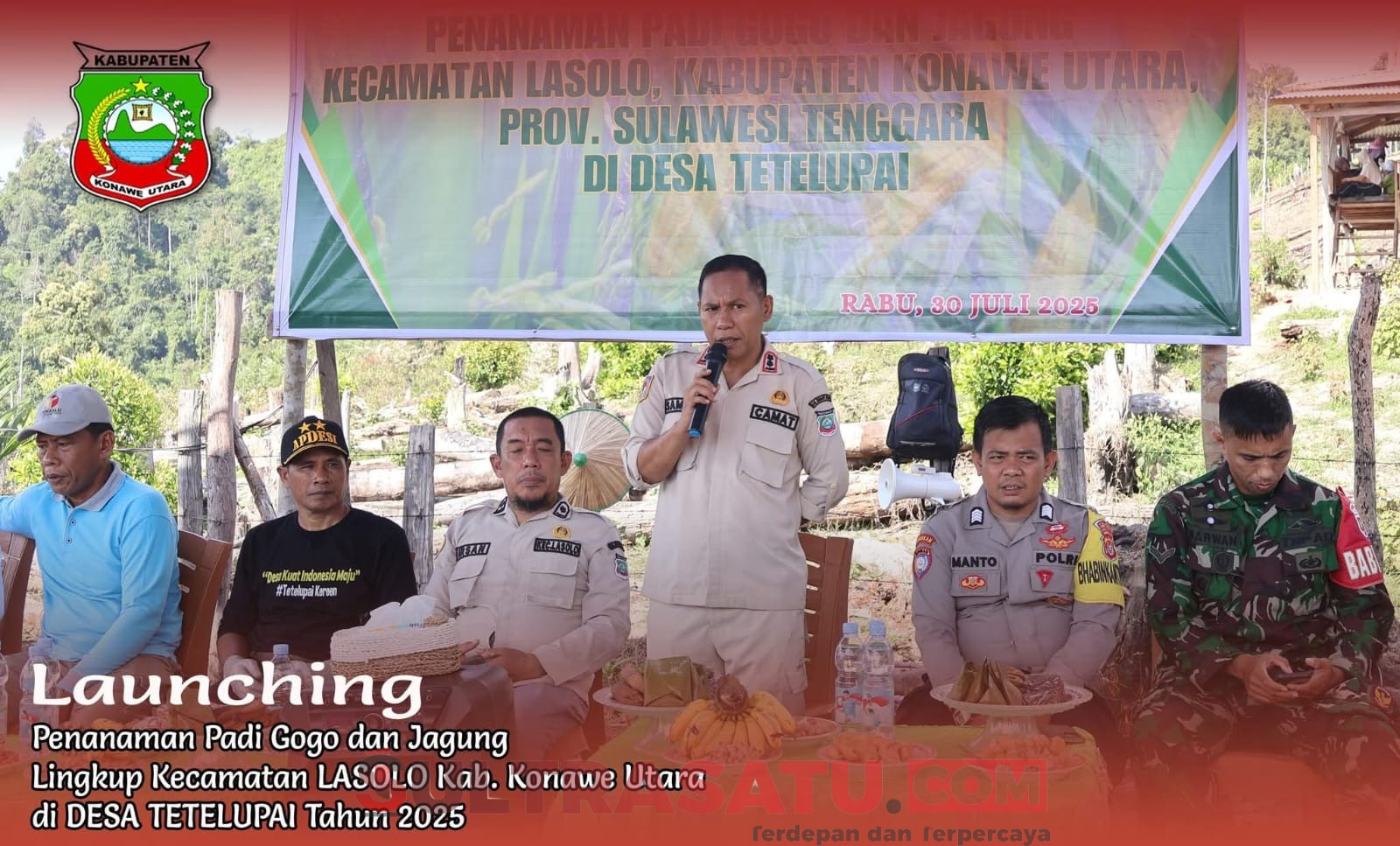Pemerintah Kecamatan Lasolo bersama Pemerintah Desa Tetelupai menggelar Launching Perdana Penanaman Padi Gogo dan Jagung, di areal pertanian Desa Tetelupai, Rabu (30/7/2025).