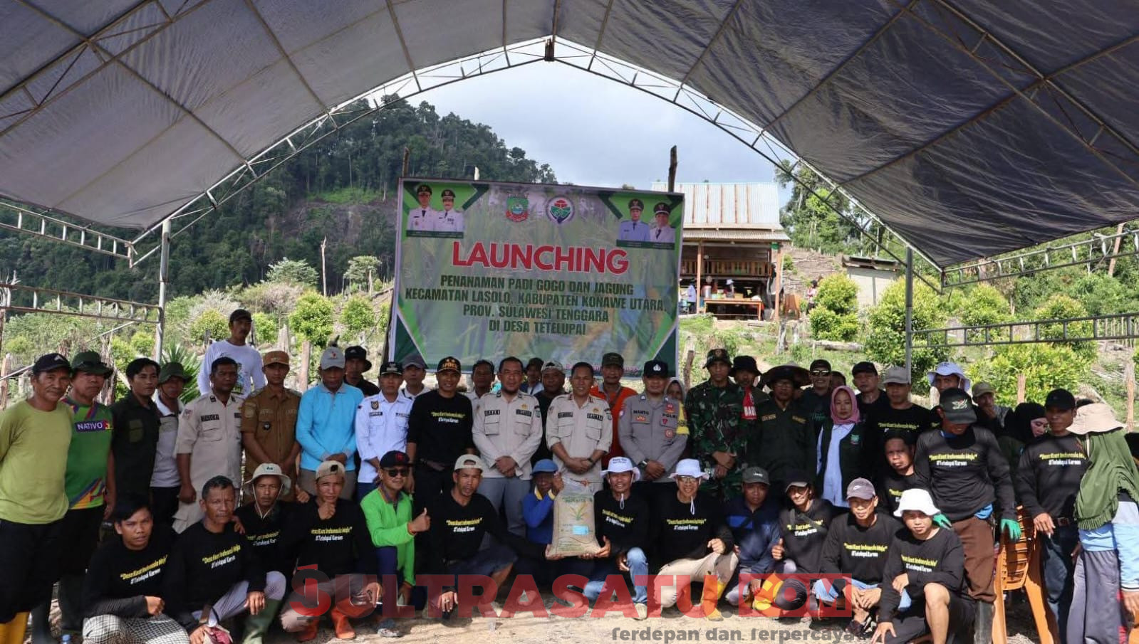 Pemerintah Kecamatan Lasolo bersama Pemerintah Desa Tetelupai menggelar Launching Perdana Penanaman Padi Gogo dan Jagung, di areal pertanian Desa Tetelupai, Rabu (30/7/2025).