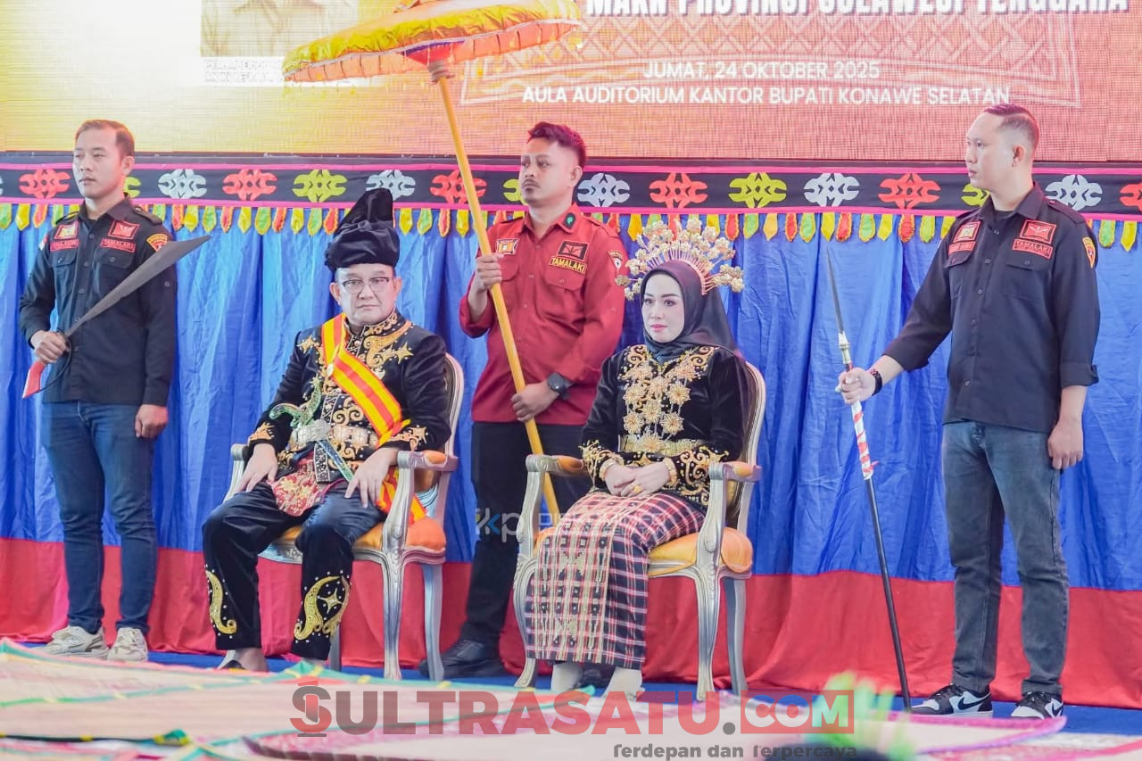 KONAWE SELATAN, SULTRASATU.COM – Pemerintah Kabupaten Konawe Selatan (Konsel) menunjukkan komitmen kuat dalam menjaga dan melestarikan adat istiadat daerah. Hal ini tercermin dari dukungan penuh terhadap pengukuhan Drs. Rustam Silondae, M.Si., sebagai Mokole Andoolo ke IX, dalam prosesi sakral Pinorehu yang digelar di lantai III Kantor Bupati Konawe Selatan, Jumat (24/10/2025).
