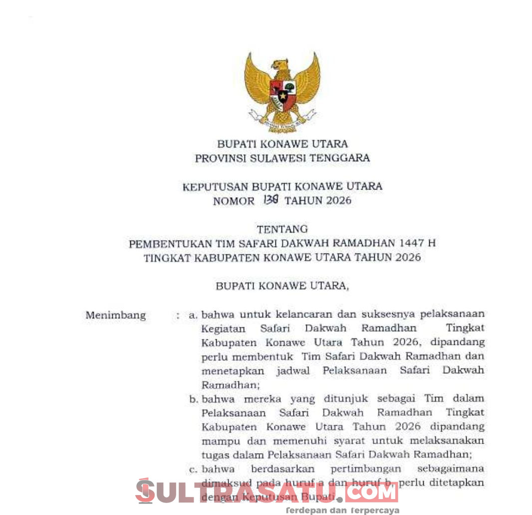 KONAWE UTARA, SULTRASATU.COM– Pemerintah Daerah (Pemda) Kabupaten Konawe Utara (Konut) kembali menunjukkan komitmennya dalam mempererat hubungan dengan masyarakat melalui pelaksanaan Safari Ramadhan 1447 Hijriah/2026 M.