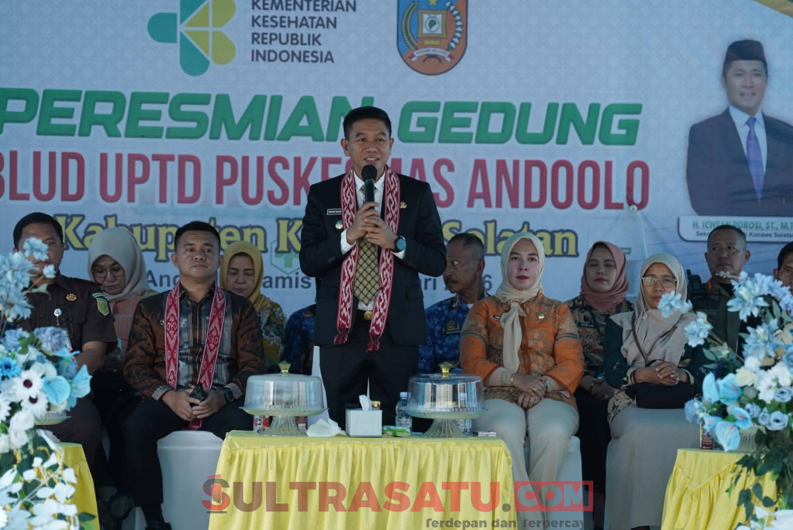 Didampingi Wakil Bupati Konsel, Wahyu Ade Pratama dan Kadis Kesehatan Nurlita Jaya, peresmian dilakukan melalui seremoni penandatanganan prasasti serta pemotongan pita di lokasi puskesmas yang terletak di Desa Andoolo tersebut.